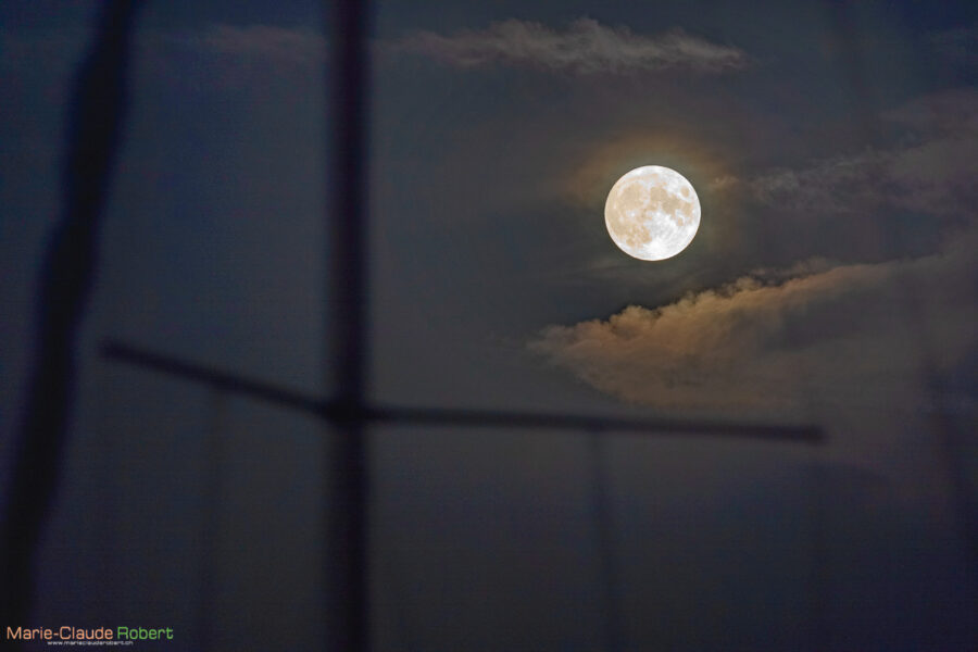 Pleine lune entre les mâts